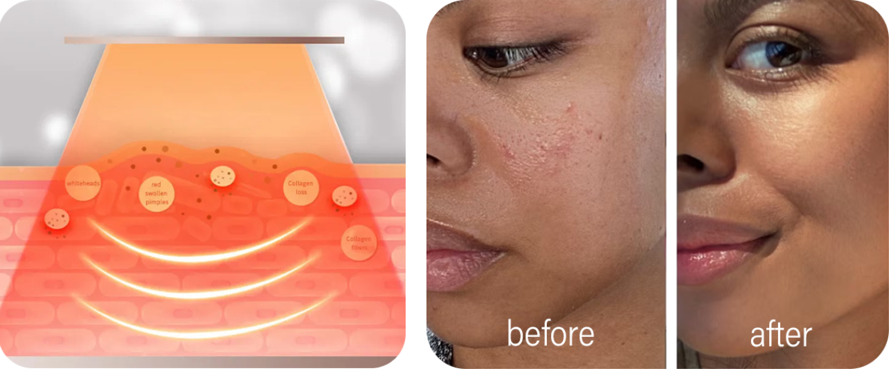 Accelerates Healing: The light energy helps speed up the skin’s natural repair processes, which can mean faster healing of acne lesions, minor scars, and other skin damage.