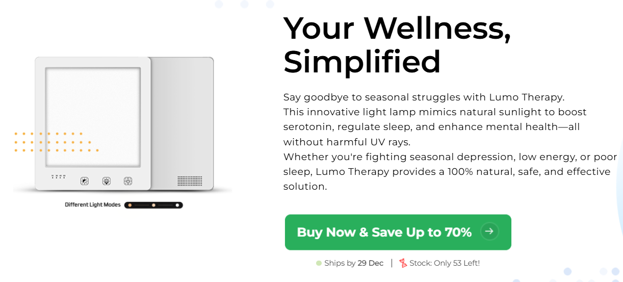 Support for Seasonal Affective Disorder (SAD) While Lumo Therapy United Kingdom is not a medical device, similar light therapy lamps are often used as part of SAD treatment plans to ease depressive symptoms triggered by winter light deficiency. Many users report reduced seasonal blues.